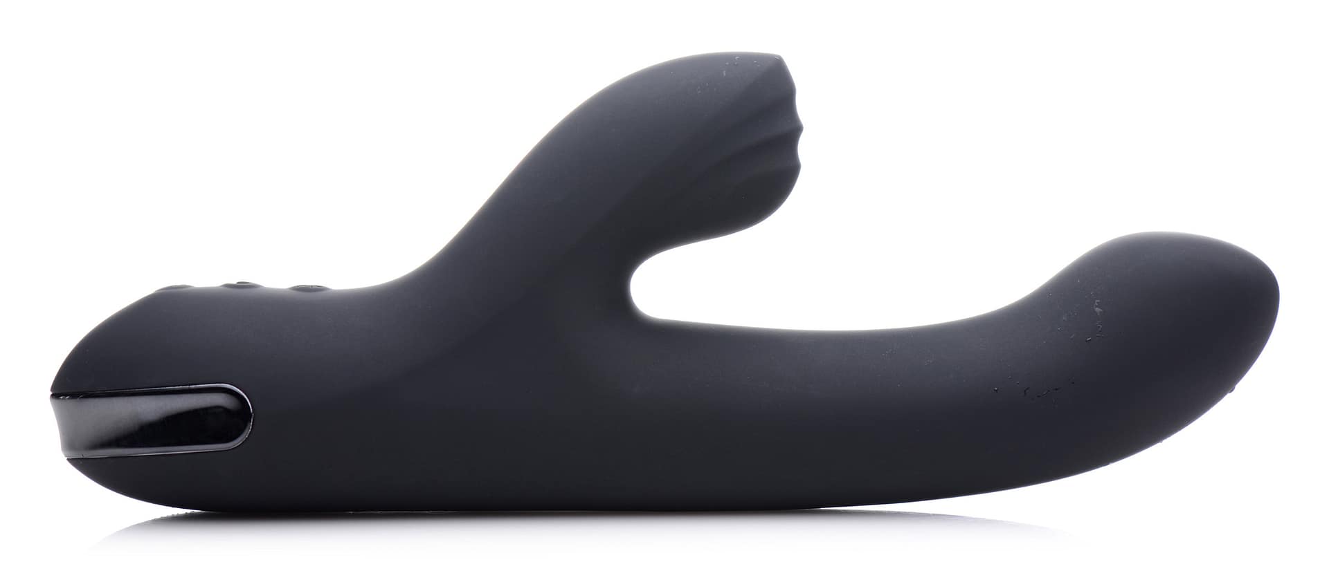 Choose from 3 clitoral pulsing patterns and 10 vibrating functions to stimulate your insides and your outsides! Control each function indepedently to mix and match sensations to match your unique preferences, or blindfold your partner and keep them guessing with different sensations as you go. Feel the velvety tip rub against your g-spot while the turbo thumping clitoris stimulator sends you over the edge to blended orgasm heaven!