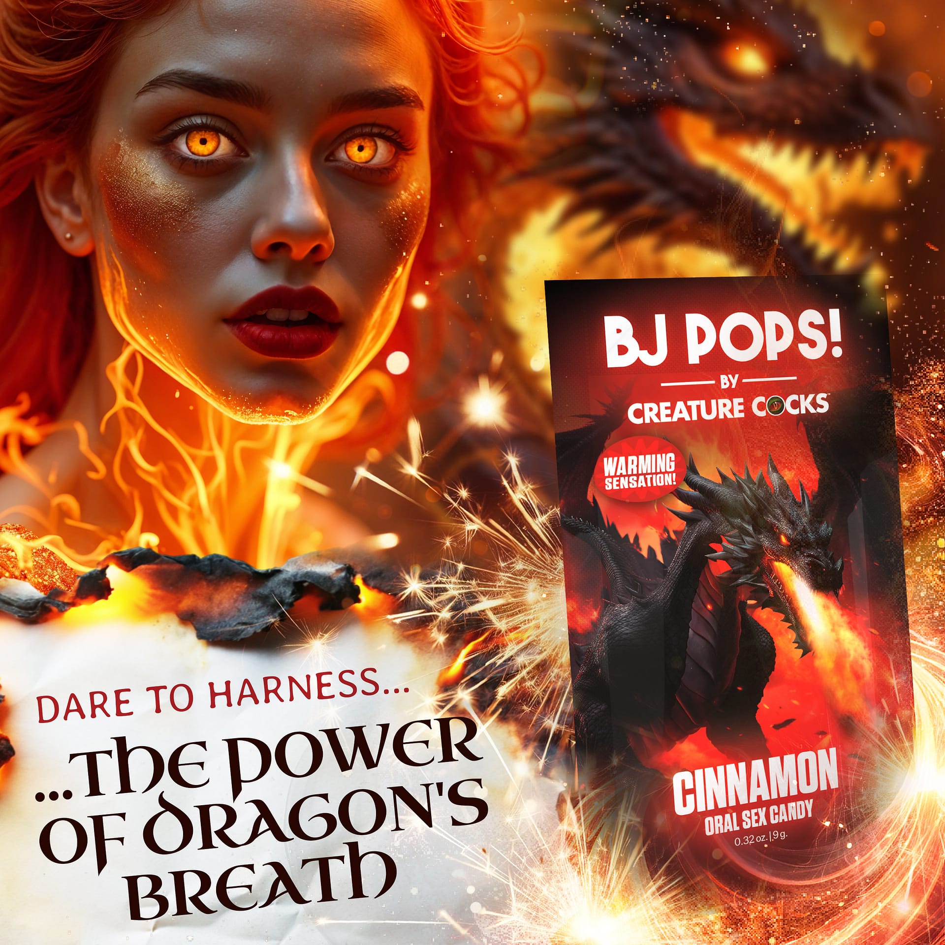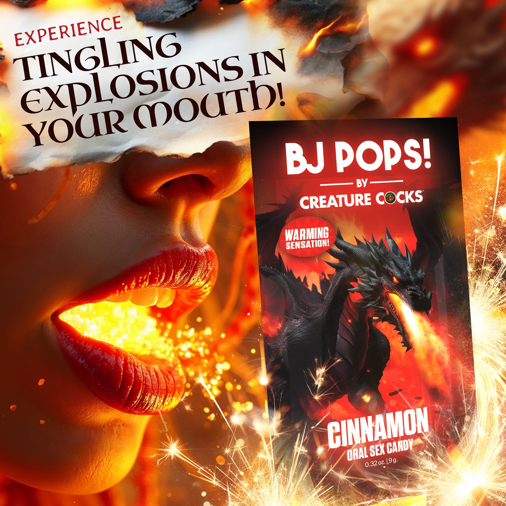 BJ Pops popping candy is a fiery treat for sensation-seekers and hedonist pleasure seekers! Unleash the warmth of cinnamon flavor that tantalizes your tongue with popping and sizzling action. This candy doesn’t just taste good; it offers a whole new dimension to your intimate moments. Infused with sensations that stimulate and excite, it*s designed to make every kiss and lick unforgettable. The perfect blend of oral enhancement and nostalgic fun for candies of our youth, BJ Pops Popping Candy promises an electrifying experience that you and your partner are sure to have fun with!