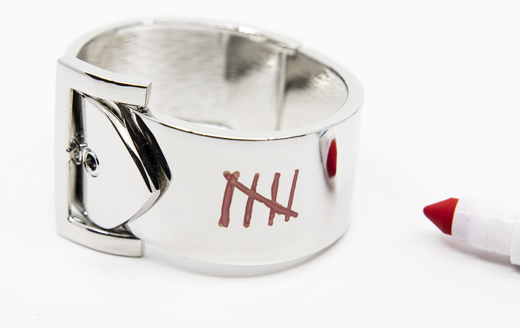 Many times a submissive is obedient and well behaved in private but quite the naughty little sub when in public. For those submissives that feel like they can get away with anything, Daddy’s Belt Embracelet provides a perfect canvas for keeping tracking of all your sub’s wrongdoings.