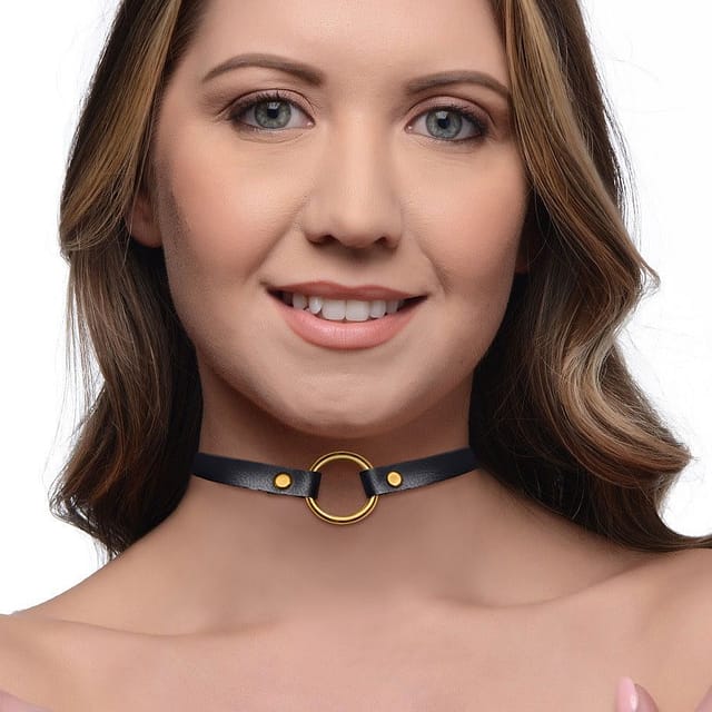 2 piece set. Adjustable leather bra and g-string with open bust and crotch. Chain and stud detailing