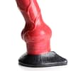 Pounce into playtime with this Hell-Hound Canine penis! The large, red dildo has bulbous testicle glands in a knot above the base, thick veins along the shaft, a concave head with pointed tip and a sturdy black base. Enjoy hands-free by using the strong, suction-cup base against a wall or flat surface or pair it with a strapon harness for pegging play! Use only with water based lubricant. Made of premium silicone, it is body safe and phthalate-free.