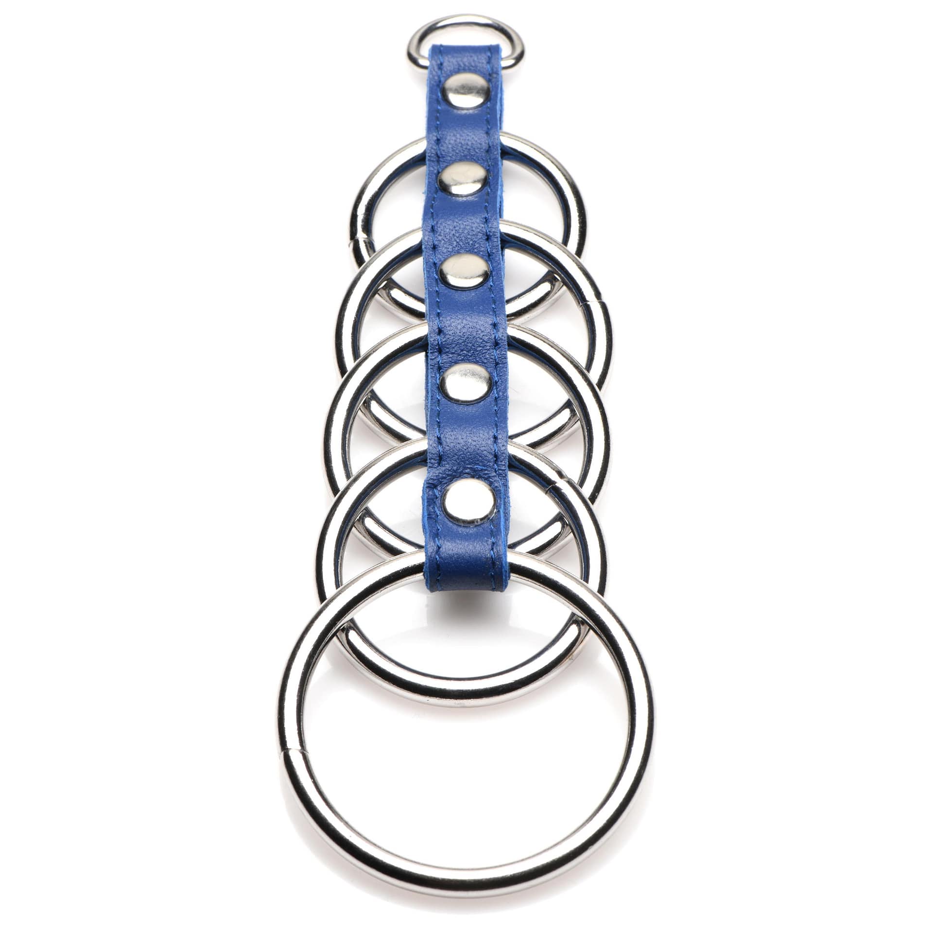 Measurements: Strap length: 4.75 inches. Ring inner diameters: 1.25 inches, 1.5 inches, 1.5 inches, 1.5 inches, 2 inches.