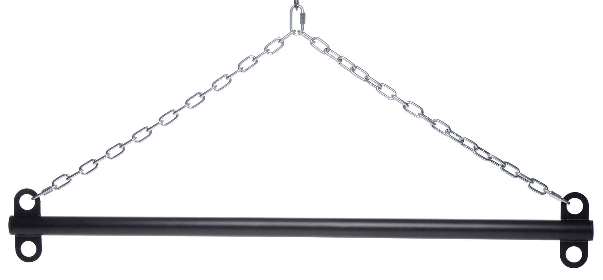 Measurements: Bar length 36 inches, bar diameter 1.25 inches, chains length 20 inches