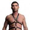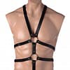 Strap into this full-body harness, designed to wrap seductively around your body and cock! Three adjustable straps ensure that this sexy bondage accessory fits most male bodies, with two cock rings that allow you to put your entire package through one, and just your cock through the other. Loom intimidatingly over your lover in this unique harness, or service your Master or Mistress. This device is perfect for those who fall into either Dominant or submissive roles.