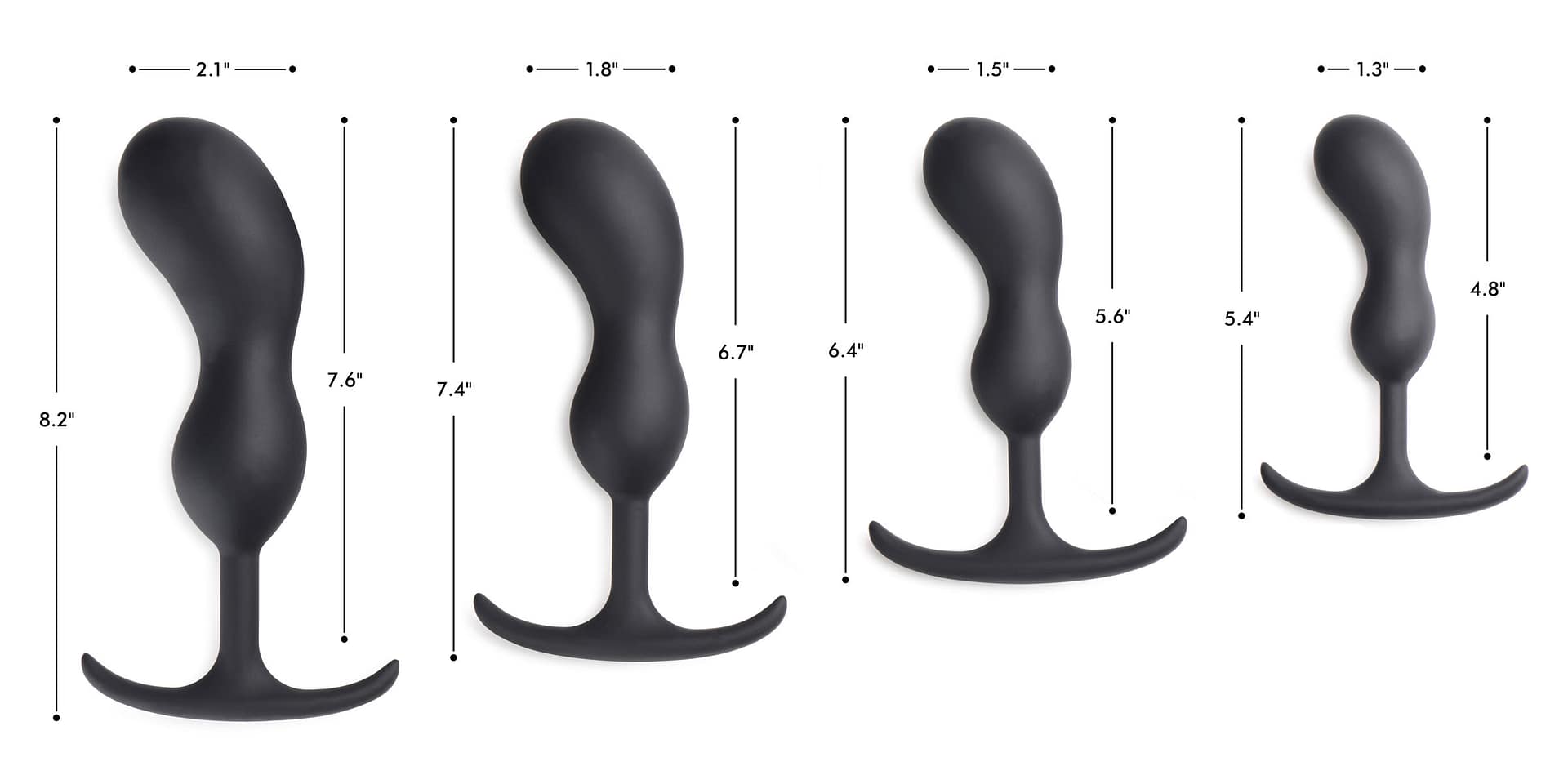 Take a Heavy Hit to your backdoor – this curved comfort plug is crafted to fill your ass and rub your prostate with its velvety exterior and heavy metal weightiness! This premium butt plug is ergonomically shaped to fill your booty with two bulbs, each featuring an internal metal weight to add a solid mass for you to squeeze and a delicious downward pull on your hole.