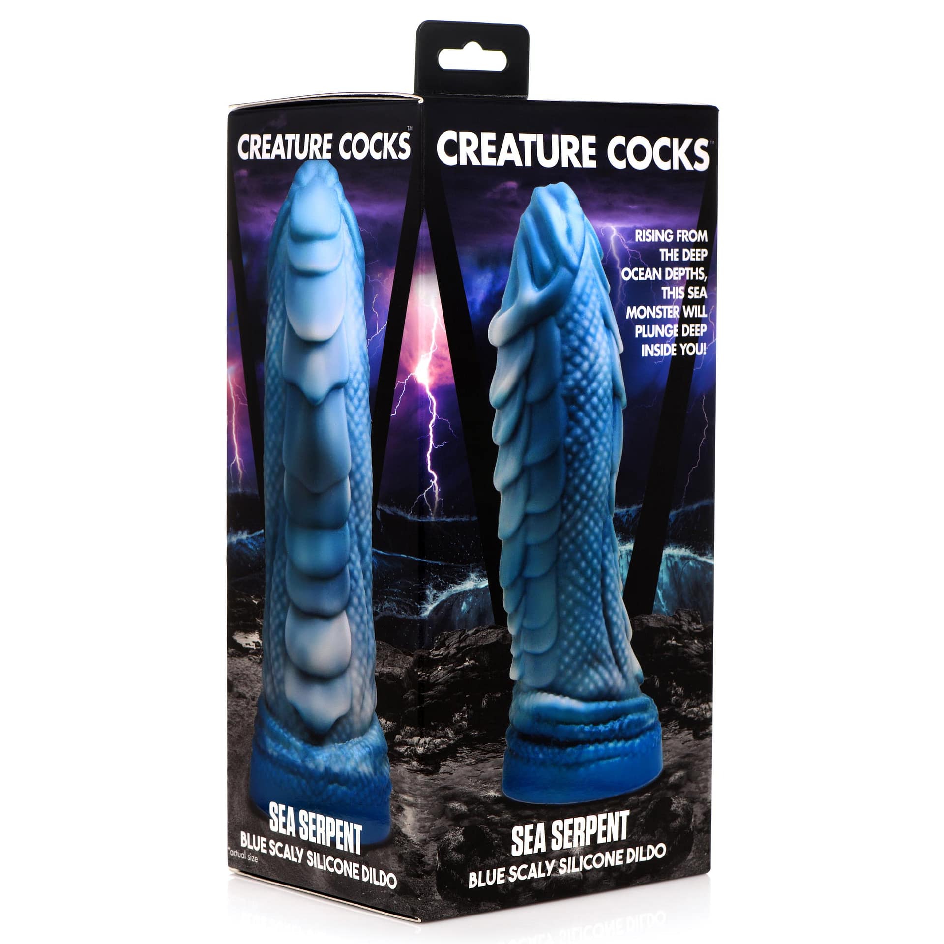 This sea serpent’s rod is built different than any you’ve had before. The rows of dragon-scales, the textured serpent skin, the ribbed head and the gentle S-curve of the shaft all contribute to the uniqueness of this deep sea dong. Take this icy white and blue shaft and enjoy handling the heavy, girthy rod made of premium grade silicone. Each touch is silky smooth to balance out all the delicious curves and bumps you’ll feel with each penetrating stroke. Completely phthalate-free, it is also body-safe and should be used only with water-based lubricants. Use it manually or enjoy the suction-cup at the base so you can ride hands-free. Bring your kinky cosplay and roleplay fantasies to life with this Sea Serpent Creature Cock! After use, wash with warm water and mild soap, then spray with a toy cleaner and pat dry. Keep separate from other silicone toys.