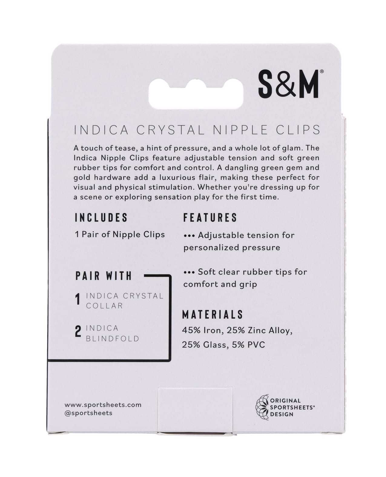 A touch of tease, a hint of pressure, and a whole lot of glam. The Indica Nipple Clips feature adjustable tension and soft rubber tips for comfort and control.