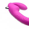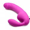This strapless strap-on is ergonomically designed to provide clitoral and vaginal stimulation to the wearer, while delivering a textured shaft for the penetrating pleasure of their partner. Furthermore, this remarkable couples toy benefits both partners with the power of a vibrating bullet. The bottom will appreciate a realistically shaped shaft, detailed with bold veins and a coronal ridge for an internal massage. The curve is ideal for targeting their G-spot or P-spot. Meanwhile, the top can enjoy a clitoral pad that is smooth for less friction, but firm for grinding against with every thrust. The small vaginal insertion is also firm, but soft and seamless, directly pinpointing the G-spot of the top. This shared penetration tool is waterproof, for enjoyment in all settings and an easy clean with mild soap and water. Made of premium silicone, it is non-porous, phthalate-free, and not compatible with silicone lubricants.